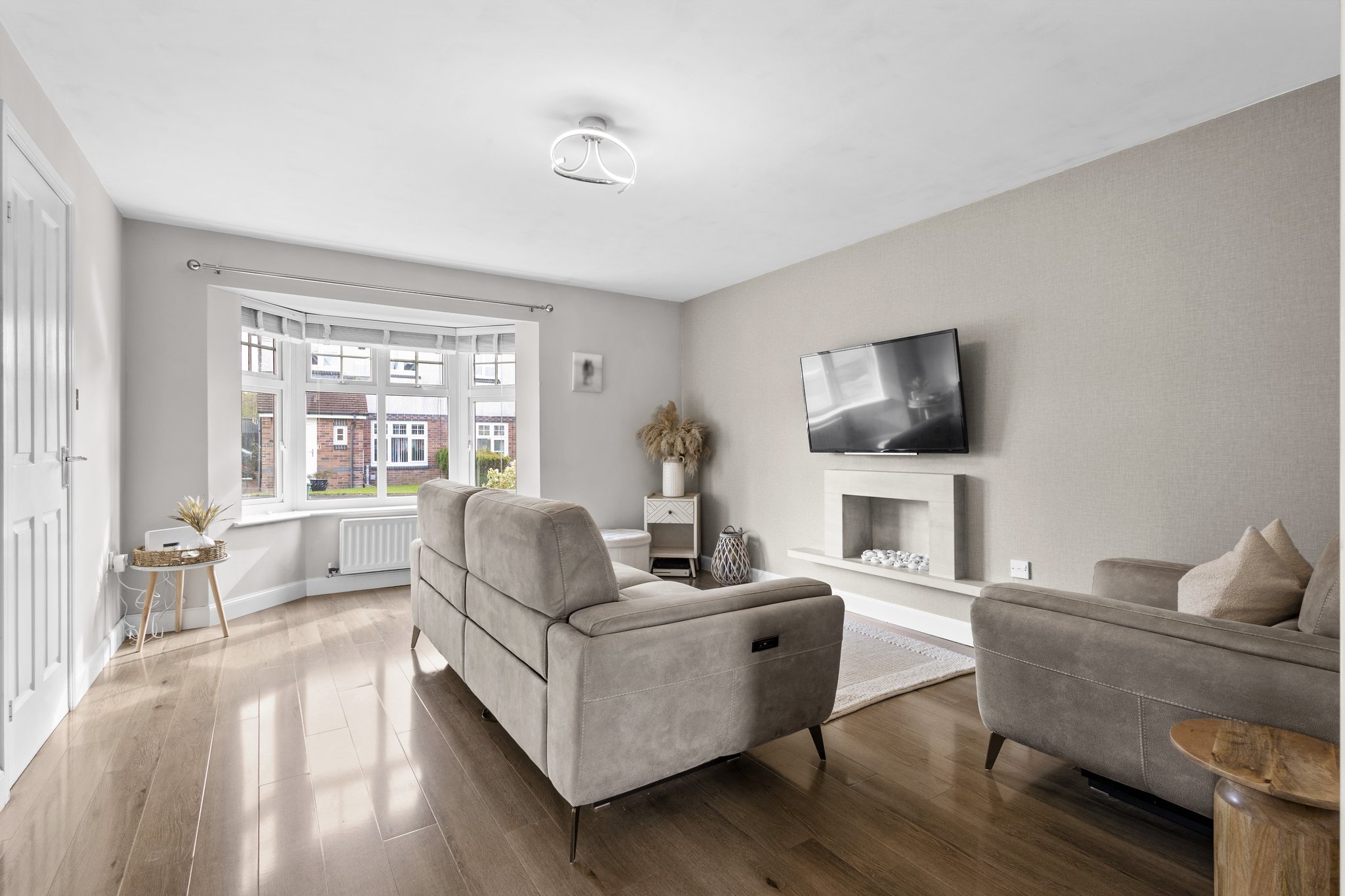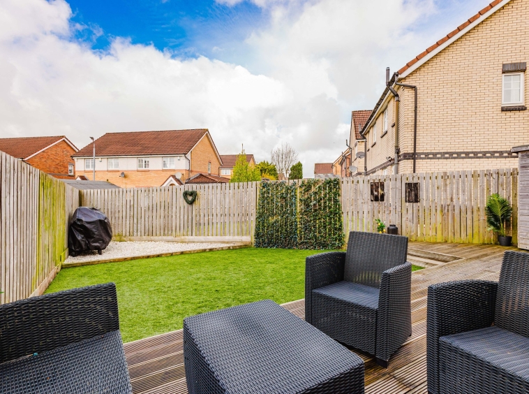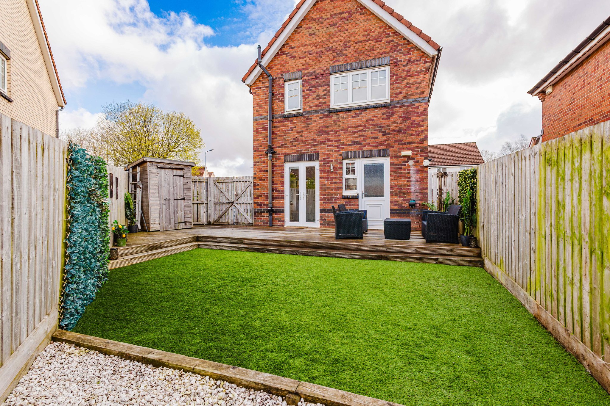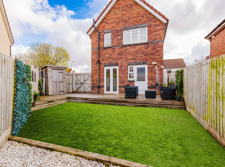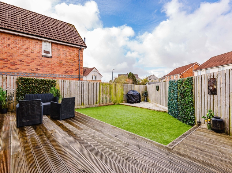 Positioned on an excellent corner plot, this property also boasts private gardens to the front, side, and rear. The front garden features a neatly maintained lawn with a bedding area, alongside a generous mono block driveway to the side offering ample off-street parking. The fully enclosed rear garden has been thoughtfully designed for low maintenance, with a chipped area, a spacious section of artificial lawn, and a decked patio—ideal for outdoor dining and entertaining.