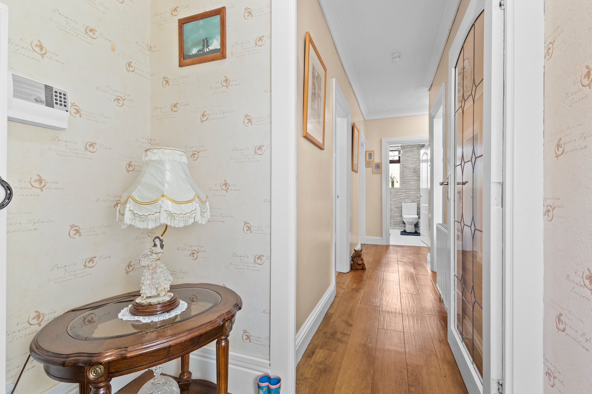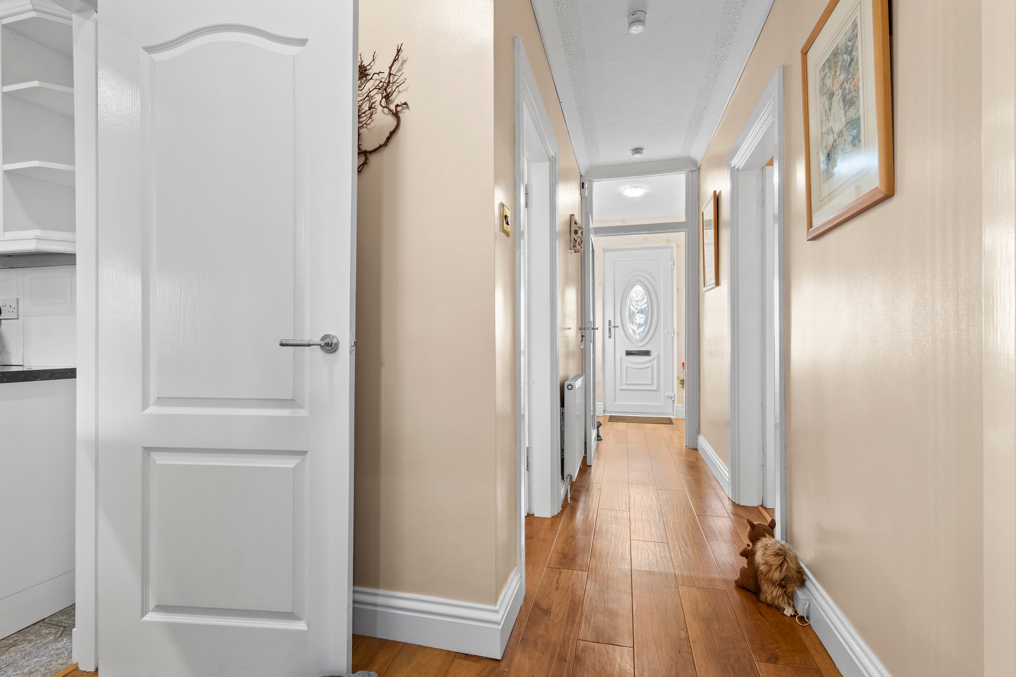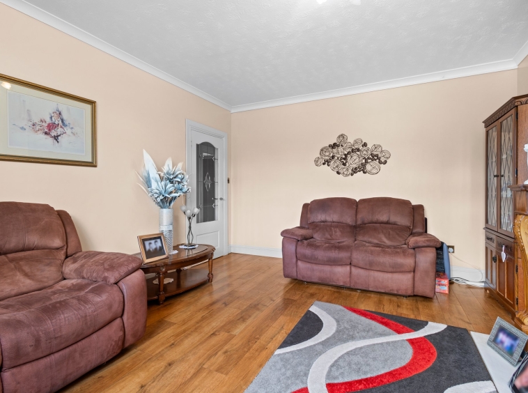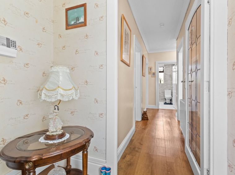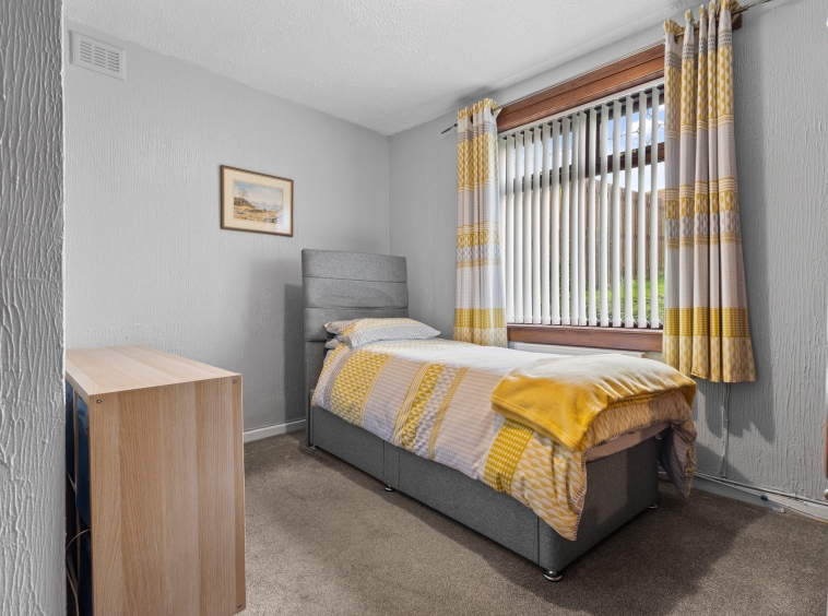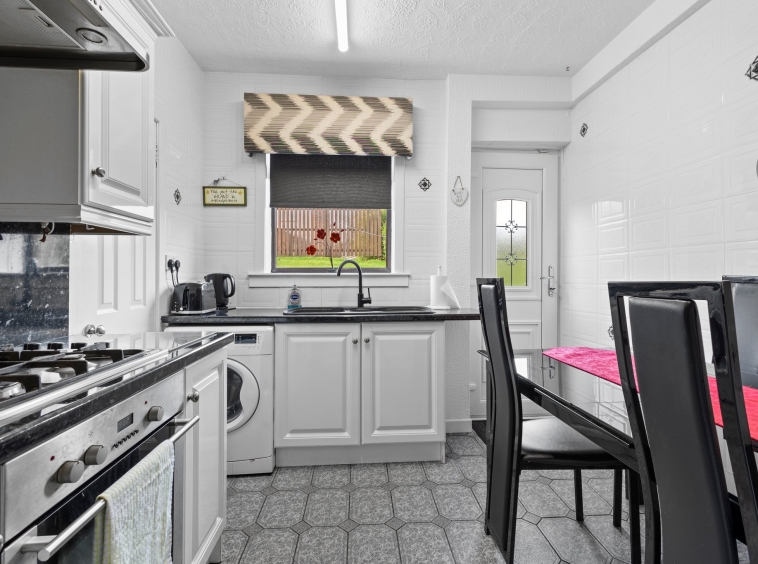 Positioned on a generous plot, this ground floor flat provides private garden grounds to the front and rear. To the front is a generous monobloc area, that would be perfect to convert to a driveway (subject to Council). The rear gardens offers a drying green area laid to lawn and patio area laid to slab.