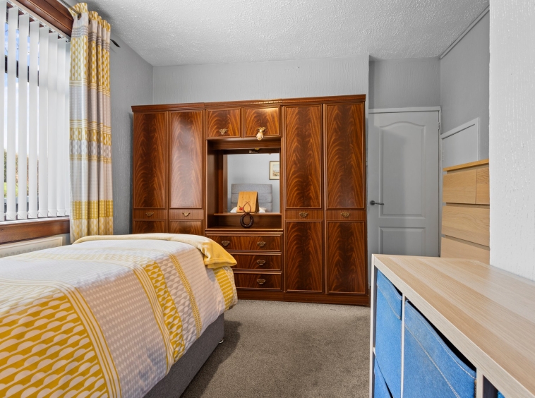3.66m x 3.29m (12′ 0″ x 10′ 10″) The second double bedroom is rear facing with a double glazed window, neutral decor, storage cupboard and fitted carpet.