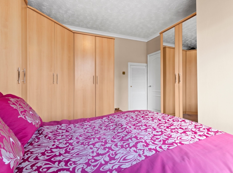 3.66m x 3.85m (12′ 0″ x 12′ 8″) The master bedroom is a generous double offering neutral decor, ceiling coving, storage cupboard, fitted carpet and double glazed window to the front.
