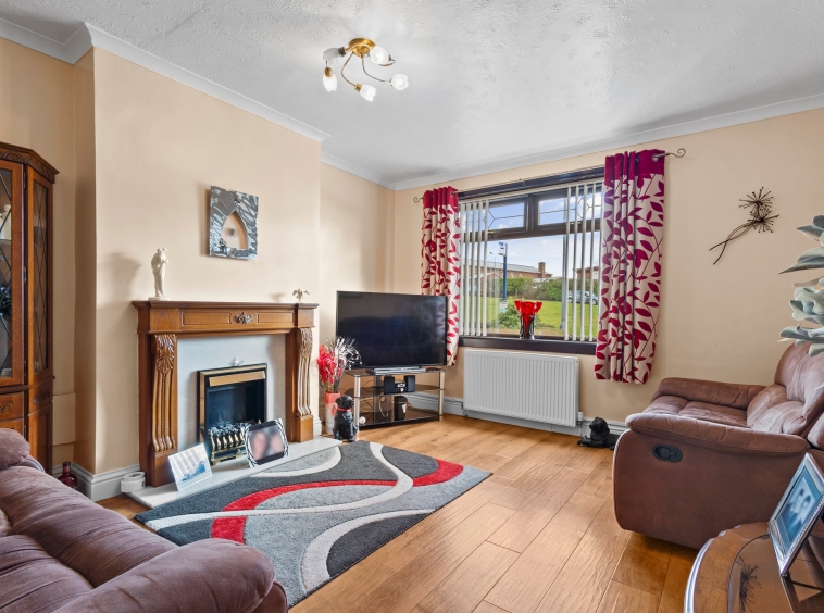3.91m x 4.49m (12′ 10″ x 14′ 9″) The formal lounge is a generously proportioned main living apartment offering soft decor, ceiling coving, feature electric fire place, laminate flooring and double glazed window to the front with open outlooks.