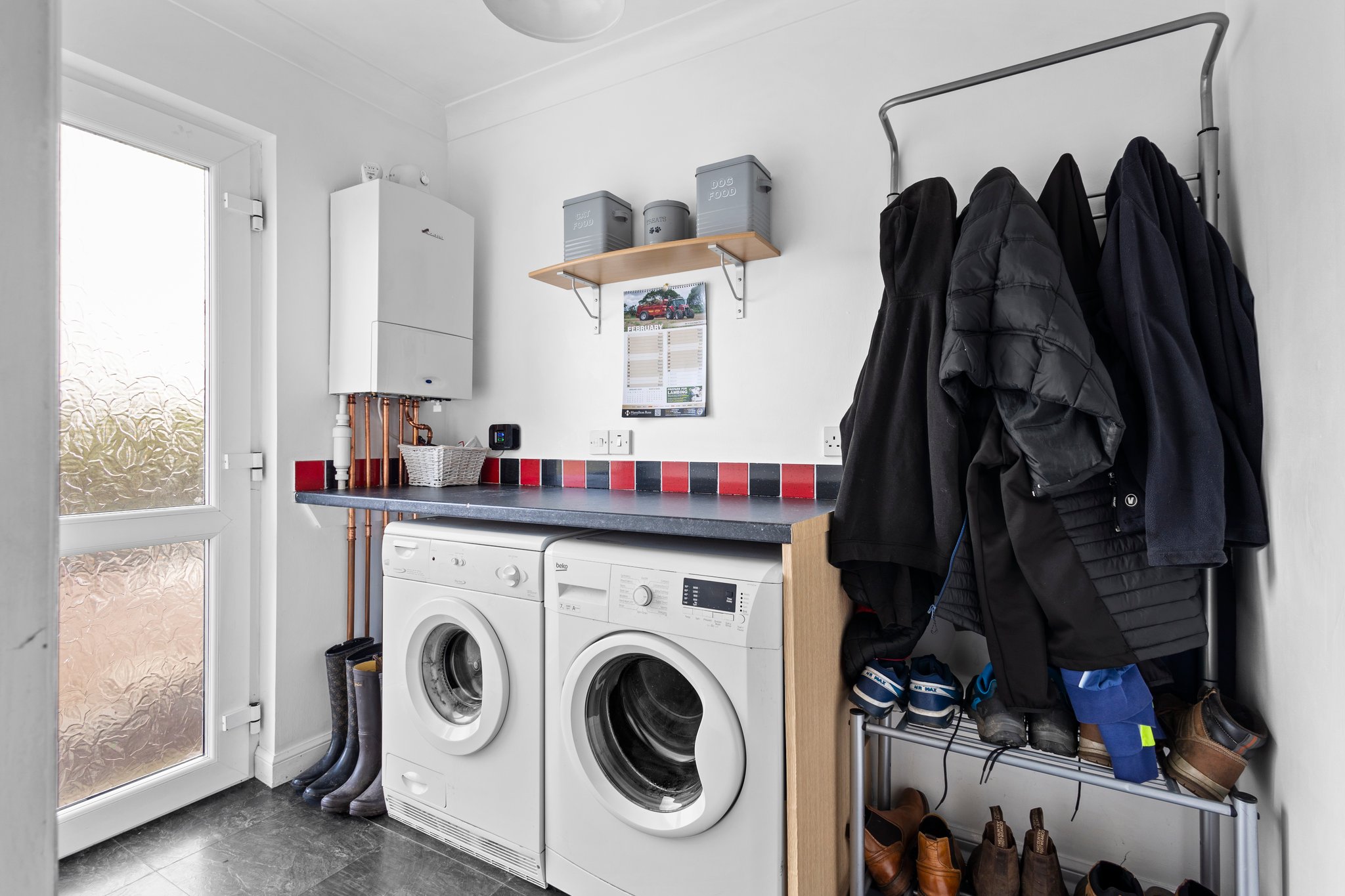 2.63m x 1.64m (8′ 8″ x 5′ 5″) Separate utility room boasts additional work surfaces, plumbing/space for washing machine and tumble dryer, neutral decor, laminate flooring, door access to cloaks/wc and door leading out into the gardens.
