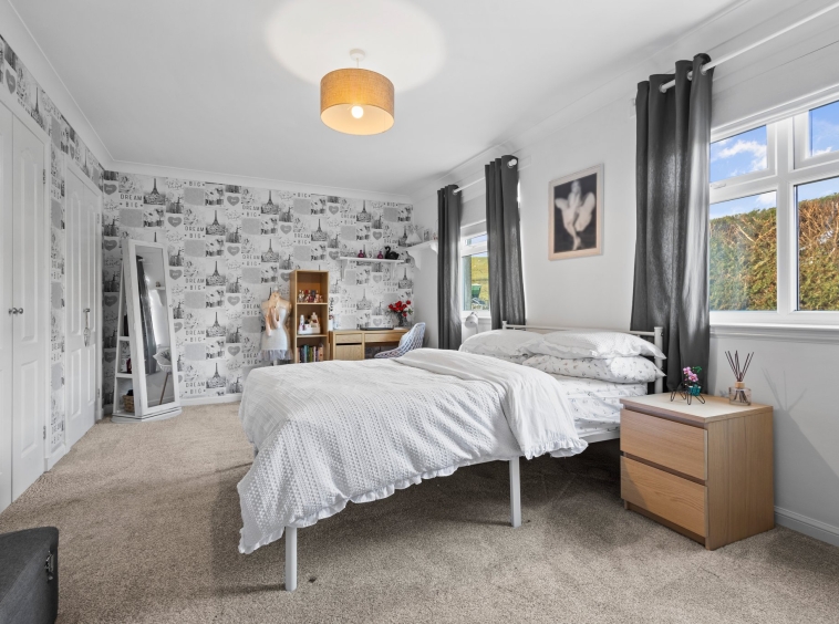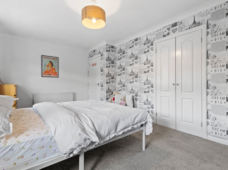 5.47m x 3.29m (17′ 11″ x 10′ 10″) The second double bedroom is complete with stylish decor, ceiling coving, fitted carpet and two double door fitted wardrobes providing plentiful storage space. Two double glazed windows to the front.