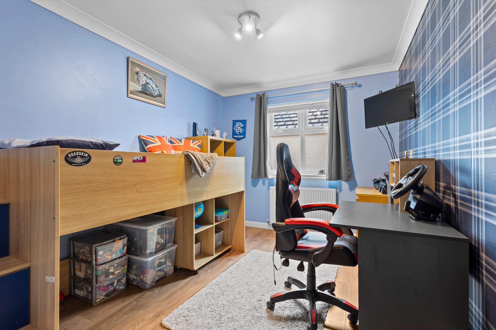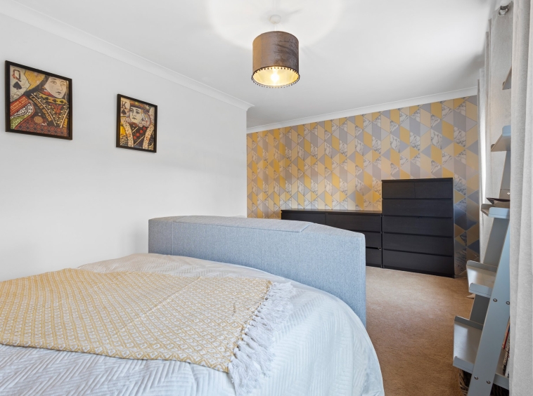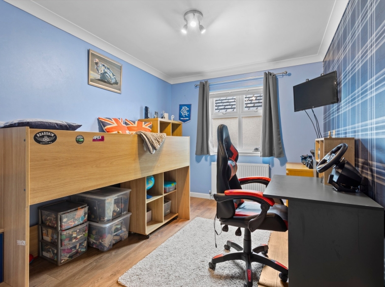 4.16m x 2.77m (13′ 8″ x 9′ 1″) Bedroom three offers modern decor with ceiling coving, laminate flooring and double glazed window to the side.