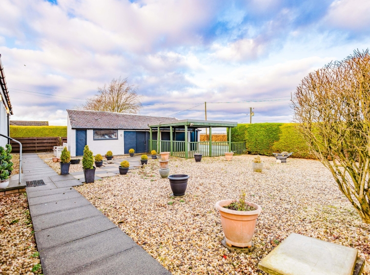 Positioned on a sizeable plot, this charming bungalow provides private low maintenance wraparound garden grounds with driveway/carport allowing plentiful off street parking and large detached garage with additional storage building which is the former Crosshands School sheds. The front gardens are mostly laid to chips with paved pathway, bordered by hedging allowing privacy. The rear gardens comprise of a paved patio and bedding/shrubbery area, bordered by fencing.