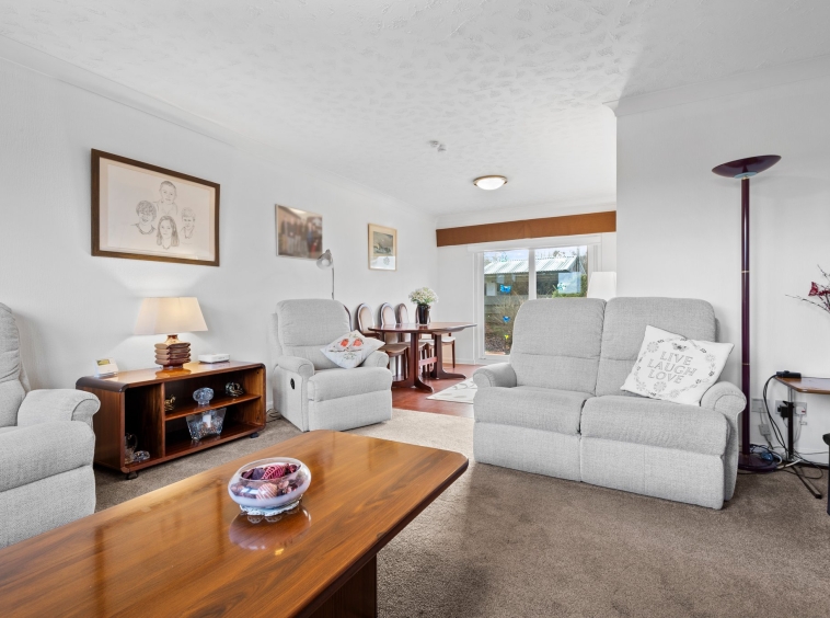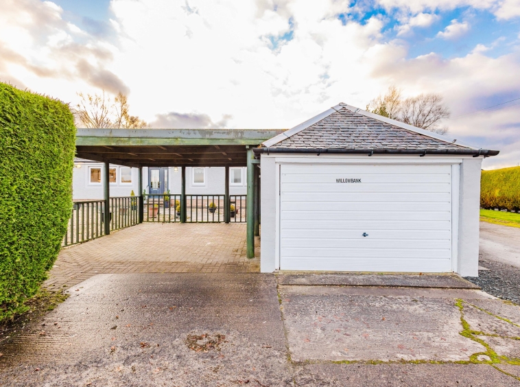 The bungalow boasts generous, flexible, all on the level accommodation that has been lovingly maintained and can be adapted to suit a wide variety of needs. Further enhancing the appeal is a large garage — formerly the Crosshands School sheds — along with a carport parking area and private, low maintenance gardens.