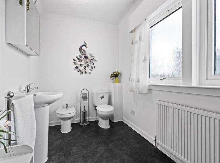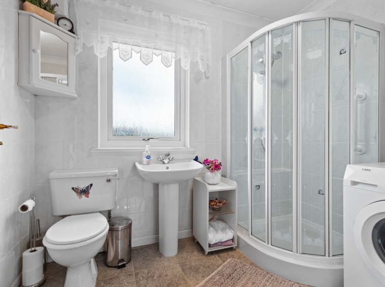 2.56m x 1.90m (8′ 5″ x 6′ 3″) Completing the accommodation is the three piece shower room comprising of a wash hand basin, wc and shower cubicle with mains overhead shower. Fully tiled walls and floor, heated towel rail and front facing double glazed opaque window.